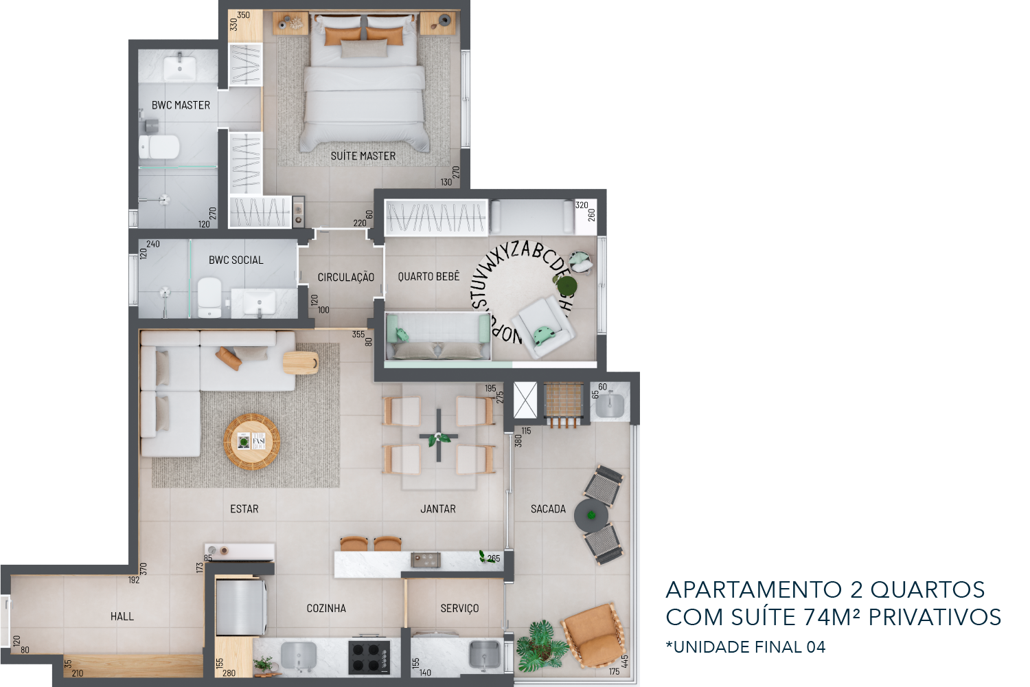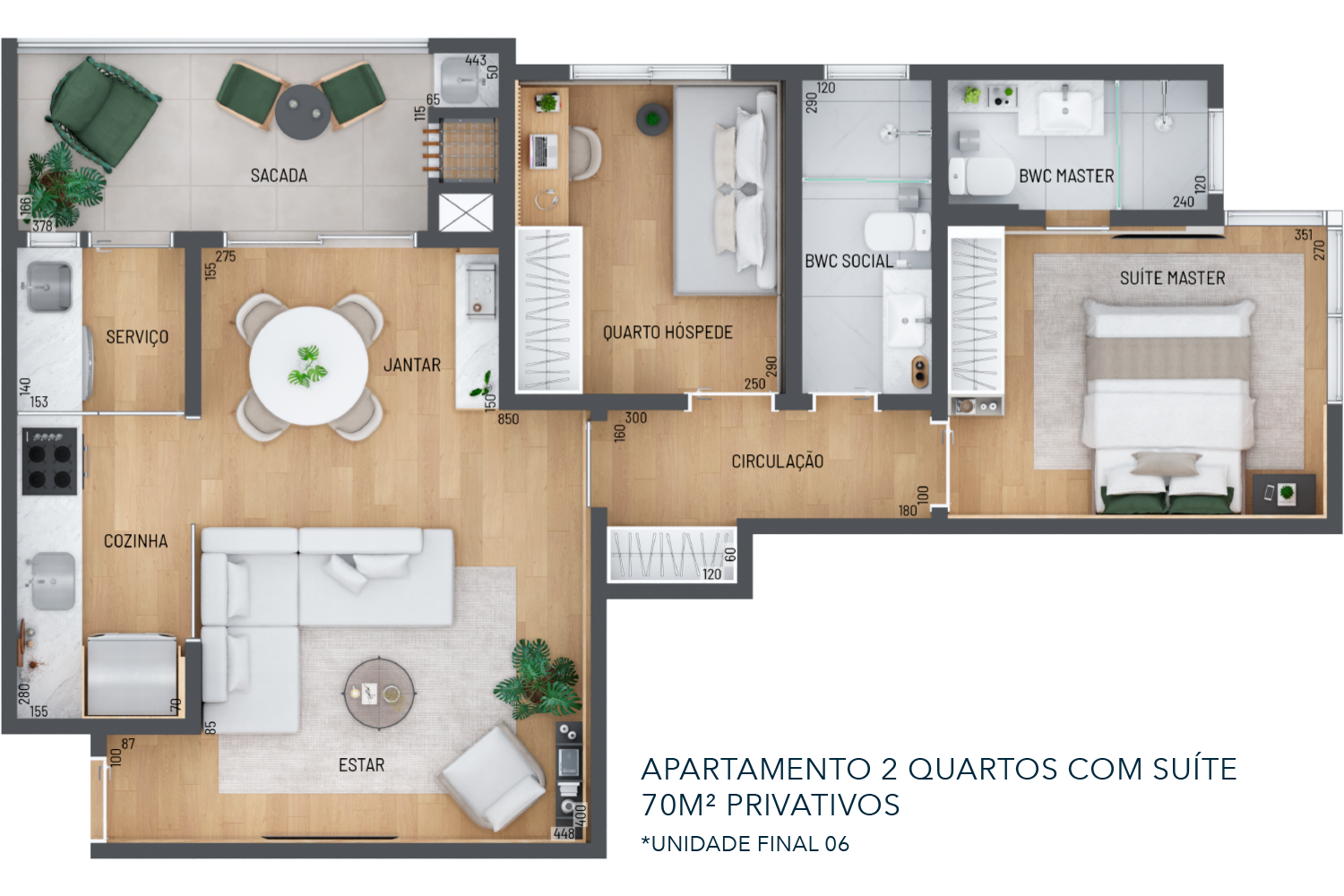 • Porcelanato acetinado entregue na sala, varanda, cozinha, área de serviço e banheiros.