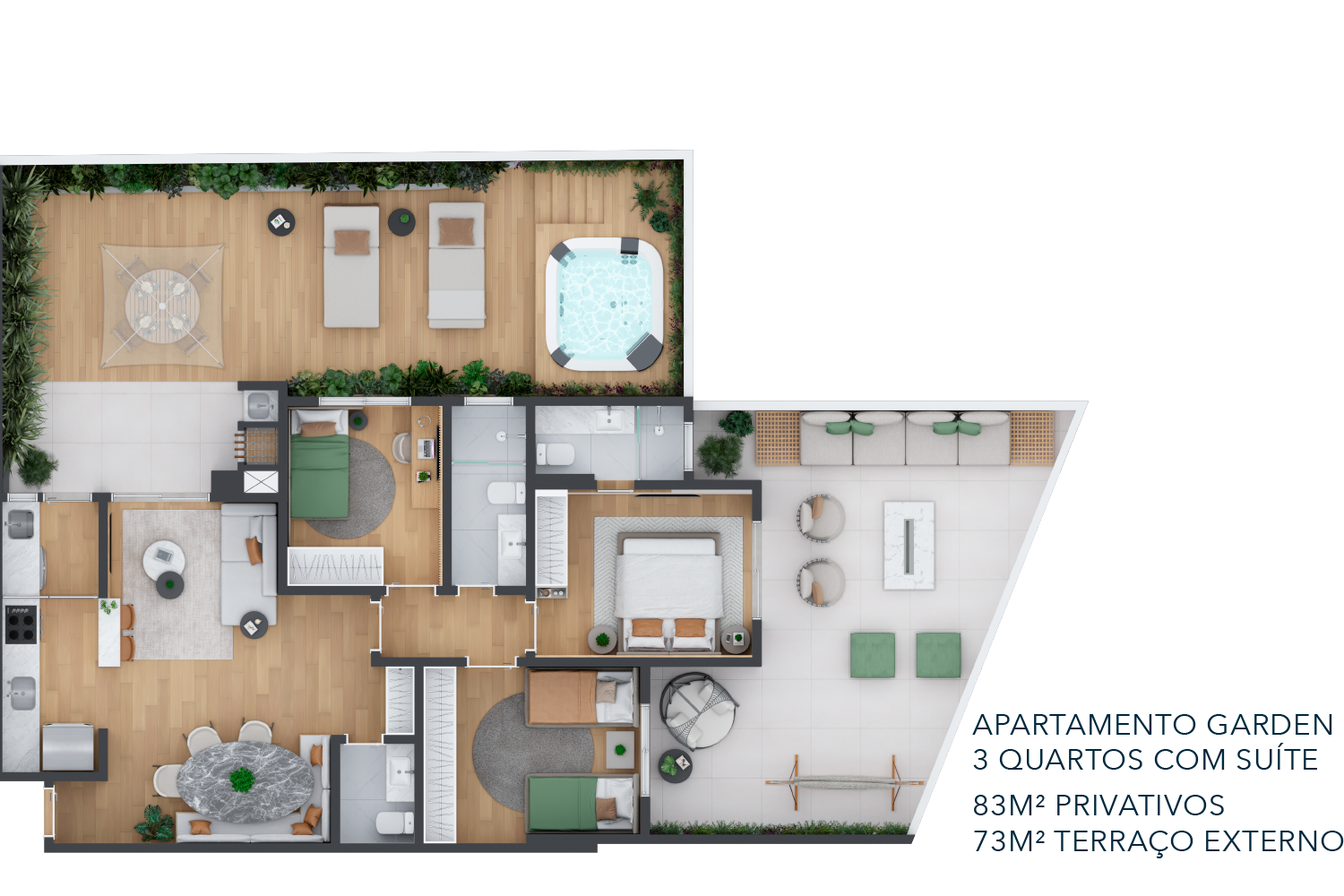• Praça de convívio com jardim e Fire Place.